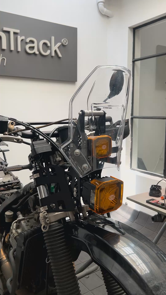 Un accesorio que  cambia la moto a una verdadera tipo Rally . Por su diseño puede ser instalado un muchas motos ya que la fijación a la moto es en las barras de la suspensión.
