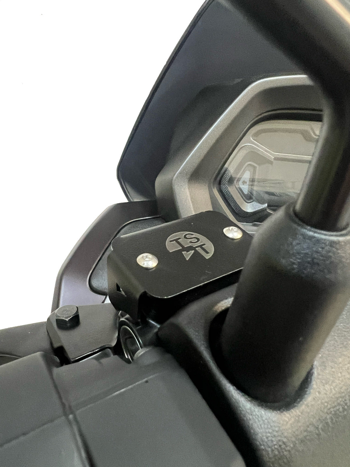 El protector de deposito de liquido de frenos es un accesorio indispensable para proteger tu bomba de freno delantero en caso de una caída o accidente, un accesorio esencial a la hora de realizar una travesía o aventura en moto.