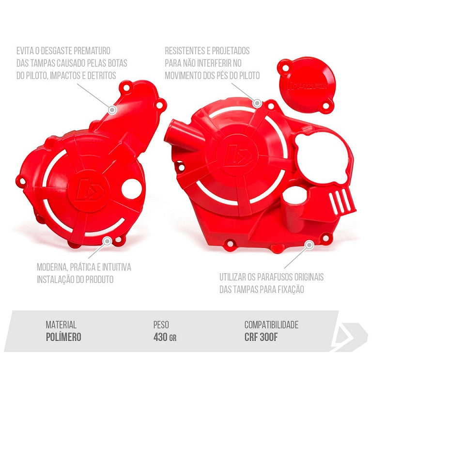 Fortalece la protección de tu motocicleta con el Kit Protector de Tapas de Motor. Este conjunto de protectores está diseñado para resguardar las partes esenciales del motor de tu motocicleta contra impactos y desgaste. Fabricado con materiales resistentes, el kit ofrece una defensa confiable, asegurando que tu motocicleta esté lista para enfrentar cualquier desafío en terrenos todoterreno.